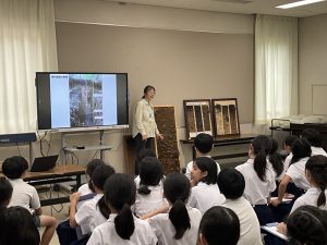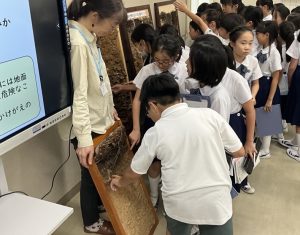 中でも子どもたちが興味津々だった話は、学校が立っている調布市は国分寺崖線と呼ばれる地形で、神代農園の地層の話などを聞き学校が立っているところの地層がどのようになっているかなどを聞きました。そこでのお話で歴史に触れるだけではなく、地層の断面を見たりしてさらに理解を深めることができました。