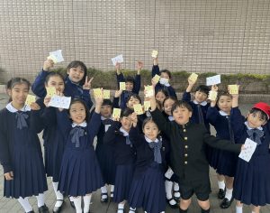 今週はあいさつ運動週間でした。 児童会役員の呼びかけに応えて、たくさんの子どもたちが校門の前で元気よく挨拶をしていました。 雨の日も、寒い日も、元気いっぱいに挨拶をする姿が素敵な1週間でした。 金曜日の最後には、1週間毎日あいさつ運動にに参加してくれた人に「あいさつ達人証」が渡されました。 これからも元気なあいさつがあふれる学校でありたいですね。