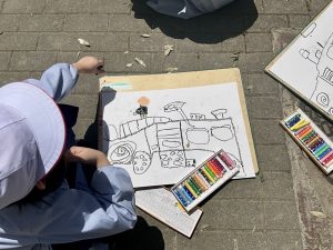 本日は、1年生を迎える会と、はたらく消防車写生会を行いました。