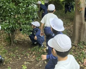 卵探しは6年生が先に森に「卵プレート」を隠しておいて、下の学年がみんなで探します。6年生は、最上級生として最初の大仕事です。ここ2年間雨のため室内で行っていましたが、今年は天気が持ち堪えて久々に学校の森で行うことができてよかったです。「ほかの人の喜びのために働く」というバトンが下級生に伝わっていったと思います。